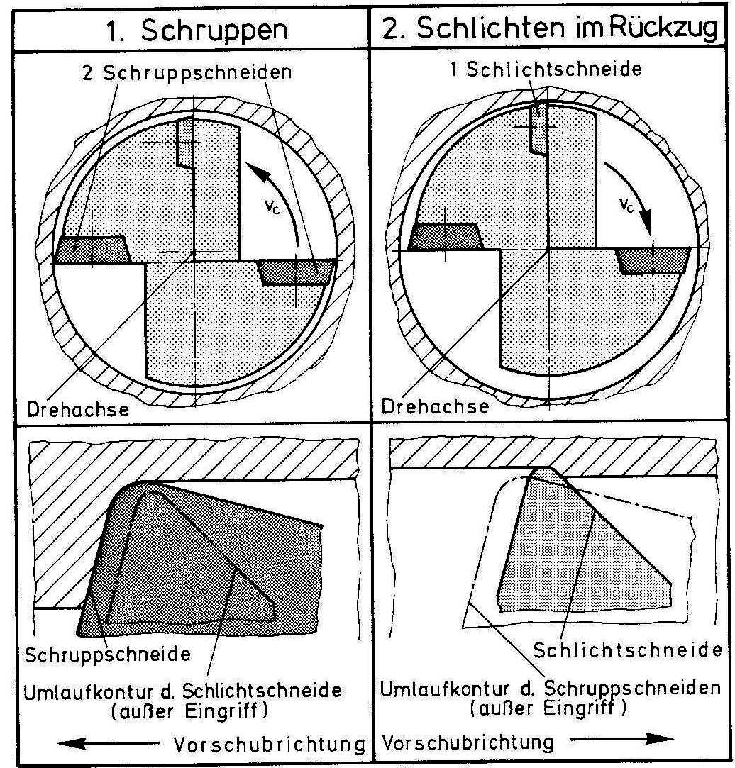 | Bild: Schematische Darstellung der Lage der Schneiden beim zweischneidigen Schruppen und einschneidigen Schlichten im Linkslauf beim Rückzug | ||||||||||||||||||||||||||||||||||||||||||||||||||||||||||||||||||||||||||||||