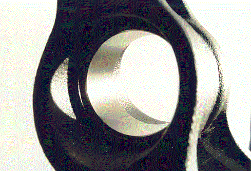 | Bild: Mit Impulser-Werkzeughalter und einem Wendeplattenwerkzeug mit zwei Schruppschneiden rechtsdrehend geschrupptes und linksdrehend im Rückzug geschlichtetes Werkstück aus GGG-60 | ||||||||||||||||||||||||||||||||||||||||||||||||||||||||||||||||||||||||||||||