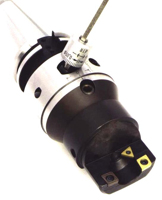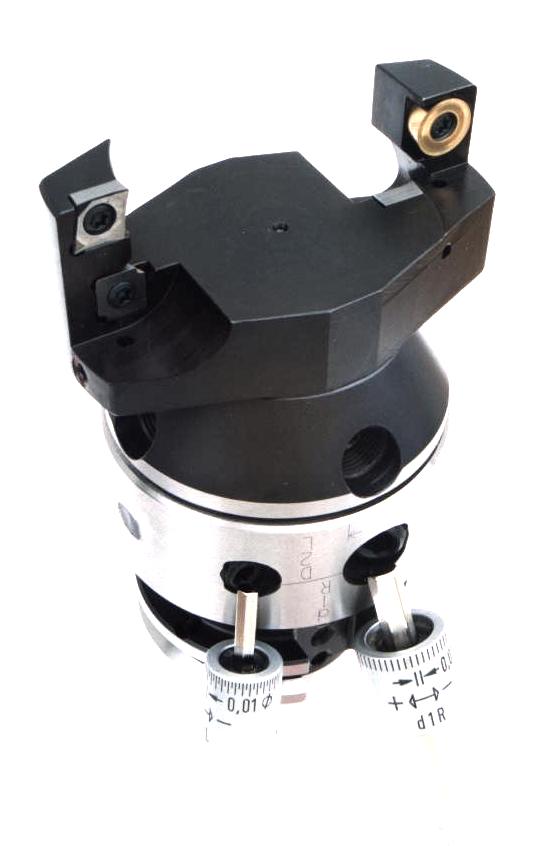 Zapfen auf BAZ mit Glockenwerkzeug vor- und fertigbearbeiten Zapfen oder Rohrstutzen an nicht rotationssymmetrischen Werkstücken werden in Großserien auf Bearbeitungszentren mit nur einem einzigen glockenförmigen Werkzeug bearbeitet. Dieses sitzt auf einem automatisch umstellenden Werkzeughalter. Mit rechtsdrehender Spindel senkt das Werkzeug zentrisch bis zur Zapfenstirn ein und fräst diese unter Quervorschub plan. Dann wird wieder zentrisch positioniert und der Außendurchmesser durch Spindeln geschruppt. Im Eilgang zieht man das Werkzeug zurück und setzt die Spindel still. Anschließend wird die Spindel auf Linkslauf gestartet. Die Umkehr der Drehrichtung veranlaßt den Halter, das Werkzeug auf seine Schlichtposition umzustellen. Mit dieser Konfiguration wird der Durch- messer auf das Fertigmaß feingespindelt. Beim Anhalten der Spindel stellt sich das Werkzeug wieder in die Schruppstellung um und wird berührungsfrei zurückgezogen. Der Schrupp- und Schlichtdurchmesser sind am Halter voreinstellbar und auch mit Skalaschlüsseln an der Maschine korrigierbar. | |||||||||||||||||||||||||||||||||||||||||||||||||||||||||||||||||||||||||||||||