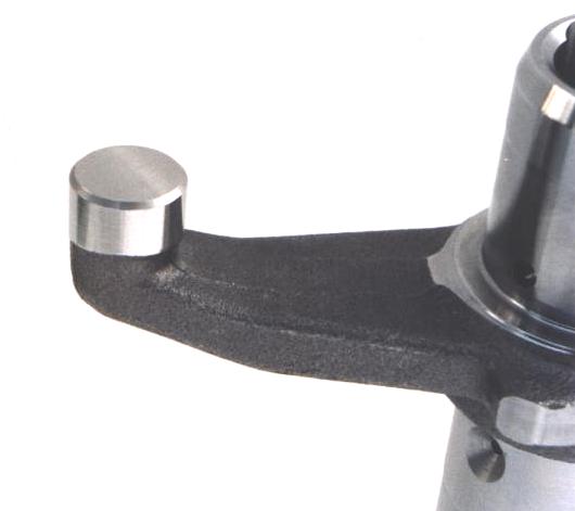 | Bild: Glockenwerkzeug auf Impulser-Werkzeughalter zum rechtsdrehend vorspindeln und anfasen sowie linksdrehend fertig-außenspindeln - Anwendung: siehe rechtes Bild | Bild: Mit Glockenwerkzeug vor- und feinbearbeiteter Zapfen an dem an einer Welle angeschmiedeten Hebels auf einem BAZ unter Verwendung des im Bild links gezeigten Werkzeugs | ||||||||||||||||||||||||||||||||||||||||||||||||||||||||||||||||||||||||||||||
