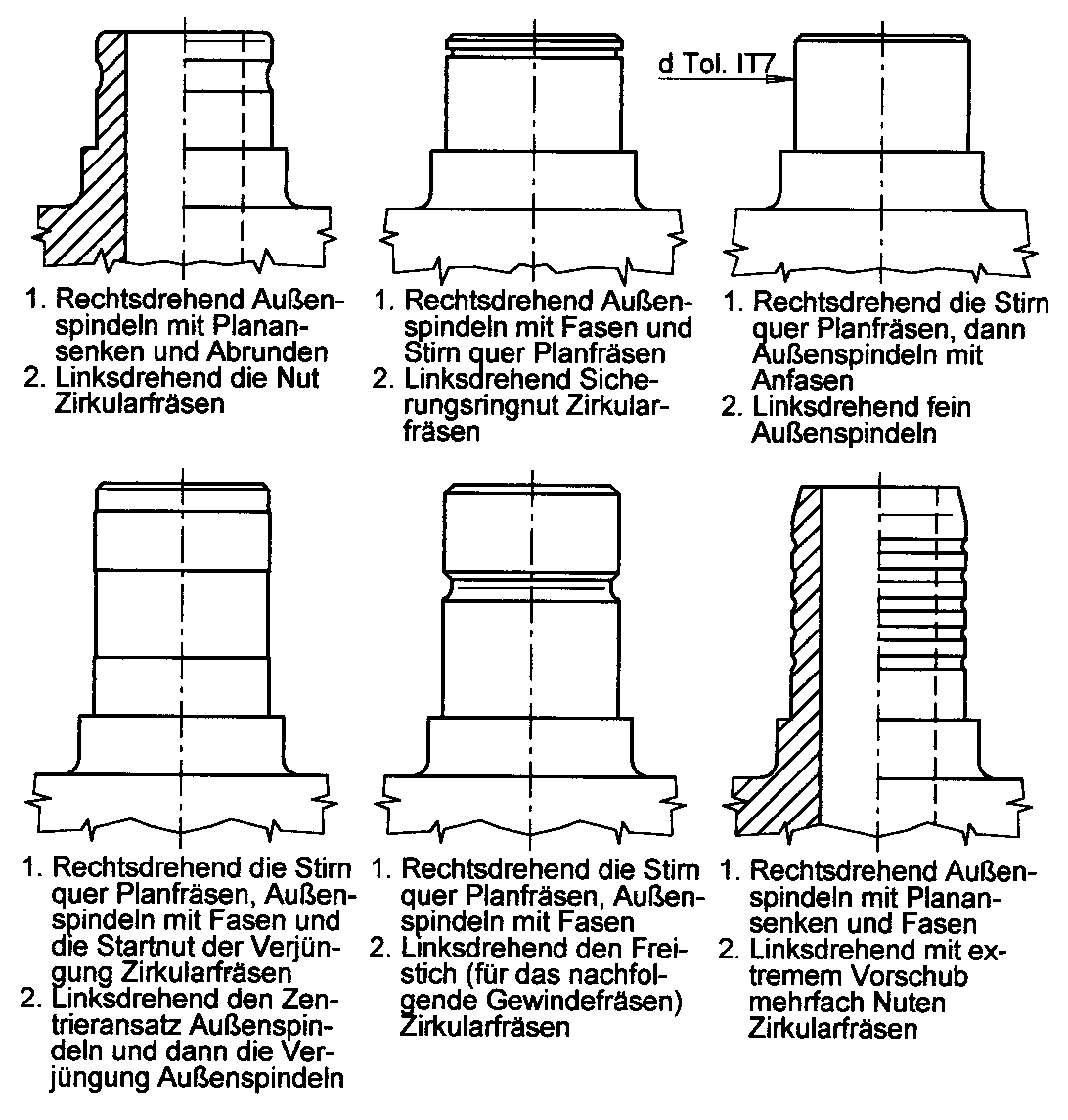 | Bild: Beispiele von mit einem Glockenwerkzeug auf dem automatisch umstellenden Impulser-Werkzeughalter herstellbaren Konturen an Zapfen oder Stutzen | |||||||||||||||||||||||||||||||||||||||||||||||||||||||||||||||||||||||||||||||